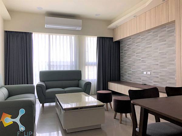 原入口處至客餐應為一開放空間,經過巧妙的分割,區隔玄關區、用餐區、客廳。