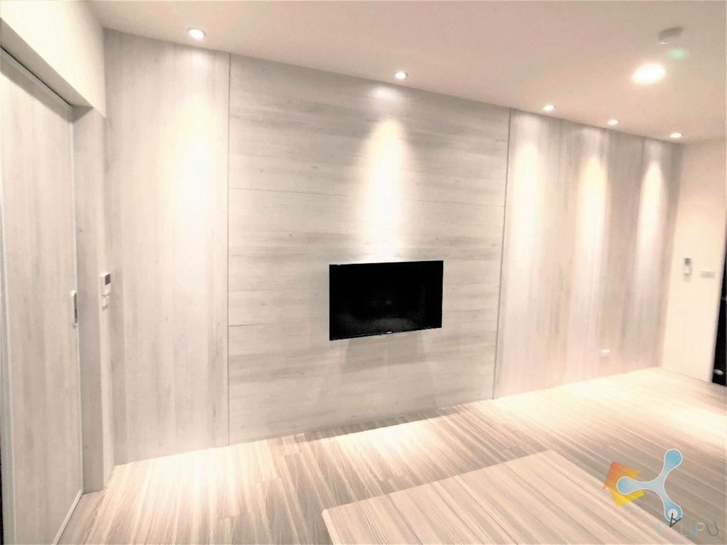 壁板的紋理垂直交錯,讓推拉門的輪廓融入其中,空間變化更生動了。