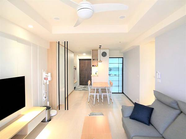 在主空間上,利用淺灰與黑色線條的鐵件點綴,營造出輕快的氛圍。