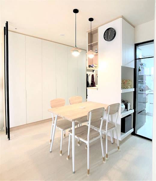 廚房邊新增的電器櫃及收納展示櫃。