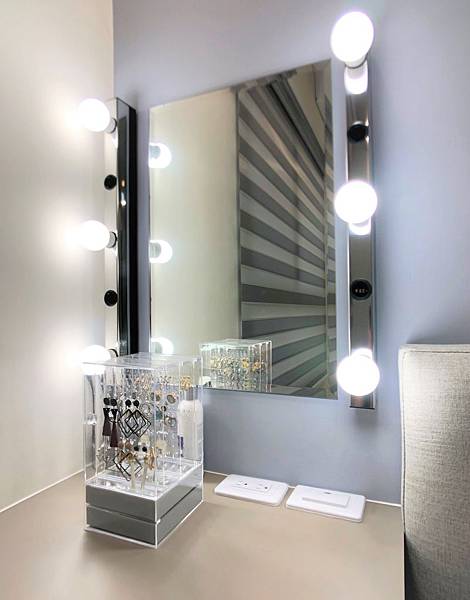 鏡子兩側的燈座,可以將臉部照的十分精細。